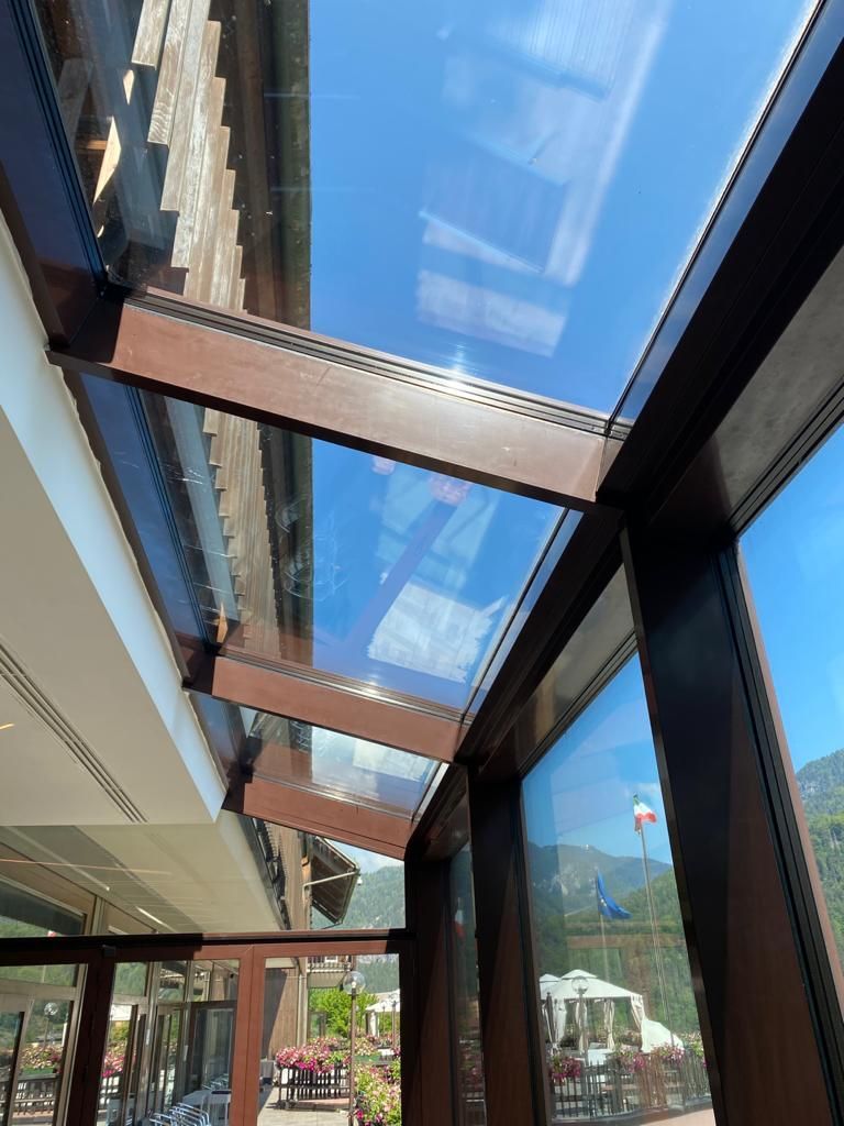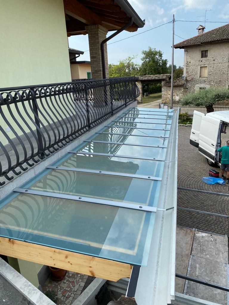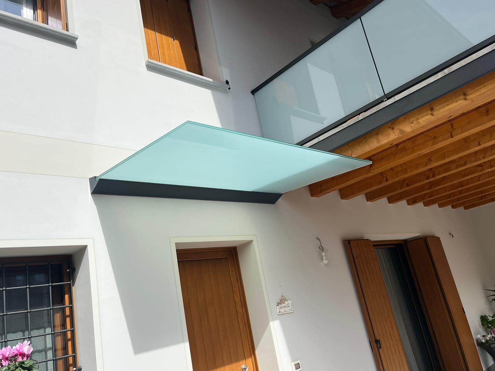 Le pensiline sono strutture in vetro che vengono installate su balconi o terrazze per fornire una protezione contro le intemperie. Vetreria Venturini realizza pensiline in vetro per ogni richiesta. Risultano leggere ma solide nel design, e donano un piacevolissimo impatto estetico all'area coperta. I materiali utilizzati sono di alta qualità e conferiscono resistenza nel tempo. Sono disponibili in diversi stili e dimensioni per soddisfare le esigenze dei clienti.